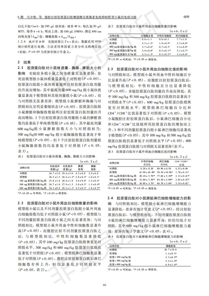 Intraperitoneal injection of collagen peptides enhances the immune function of glucocorticoid immuno