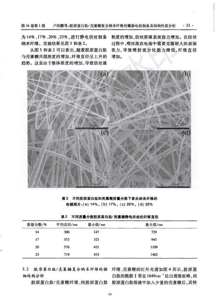 膠原蛋白肽/殼寡糖復(fù)合納米纖維的螺旋電紡制備及結(jié)構(gòu)性質(zhì)分析