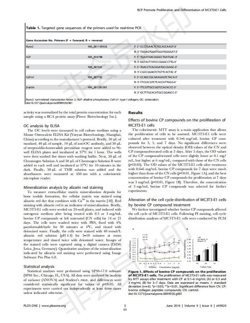 牛骨膠原蛋白肽促進(jìn)MC3T3-E1成骨細(xì)胞增殖和分化