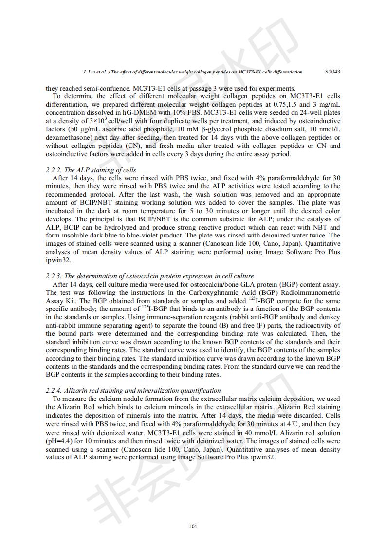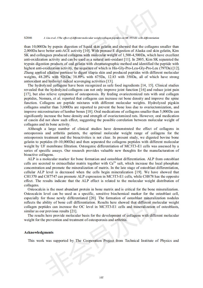 不同分子量膠原蛋白肽對MC3T3-E1細胞分化的影響