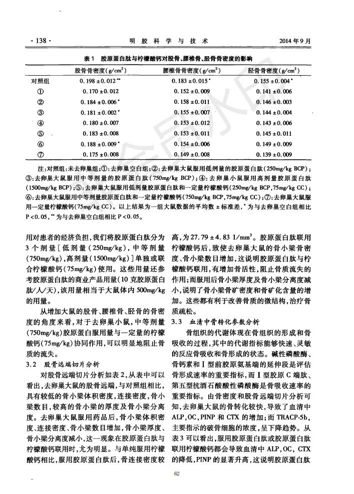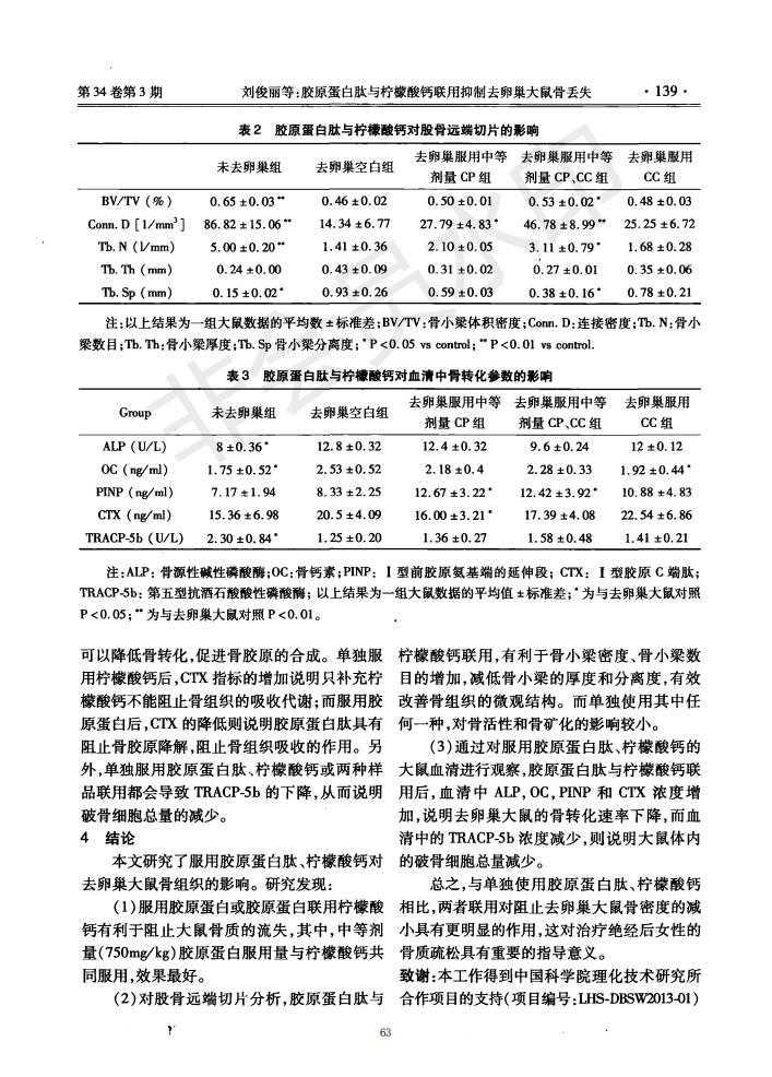 Preventive and therapeutic effects of collagen peptide and calcium citrate on bone loss in ovariecto