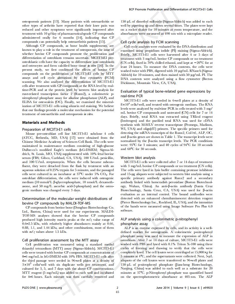 牛骨膠原蛋白肽促進(jìn)MC3T3-E1成骨細(xì)胞增殖和分化