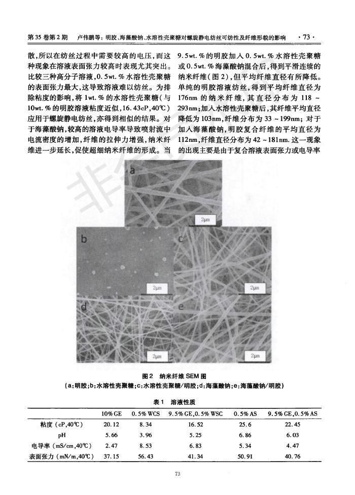 明膠、海藻酸鈉、水溶性殼聚糖對(duì)螺旋靜電紡絲可紡性及纖維形貌的影響