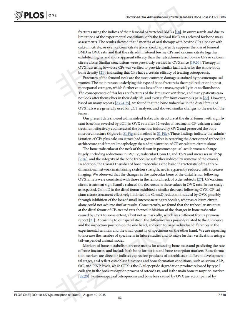 口服骨膠原肽于檸檬酸鈣抑制去卵巢大鼠骨丟失