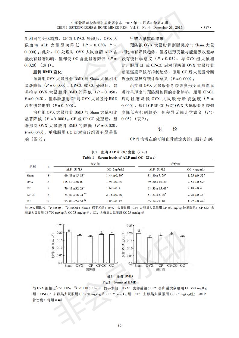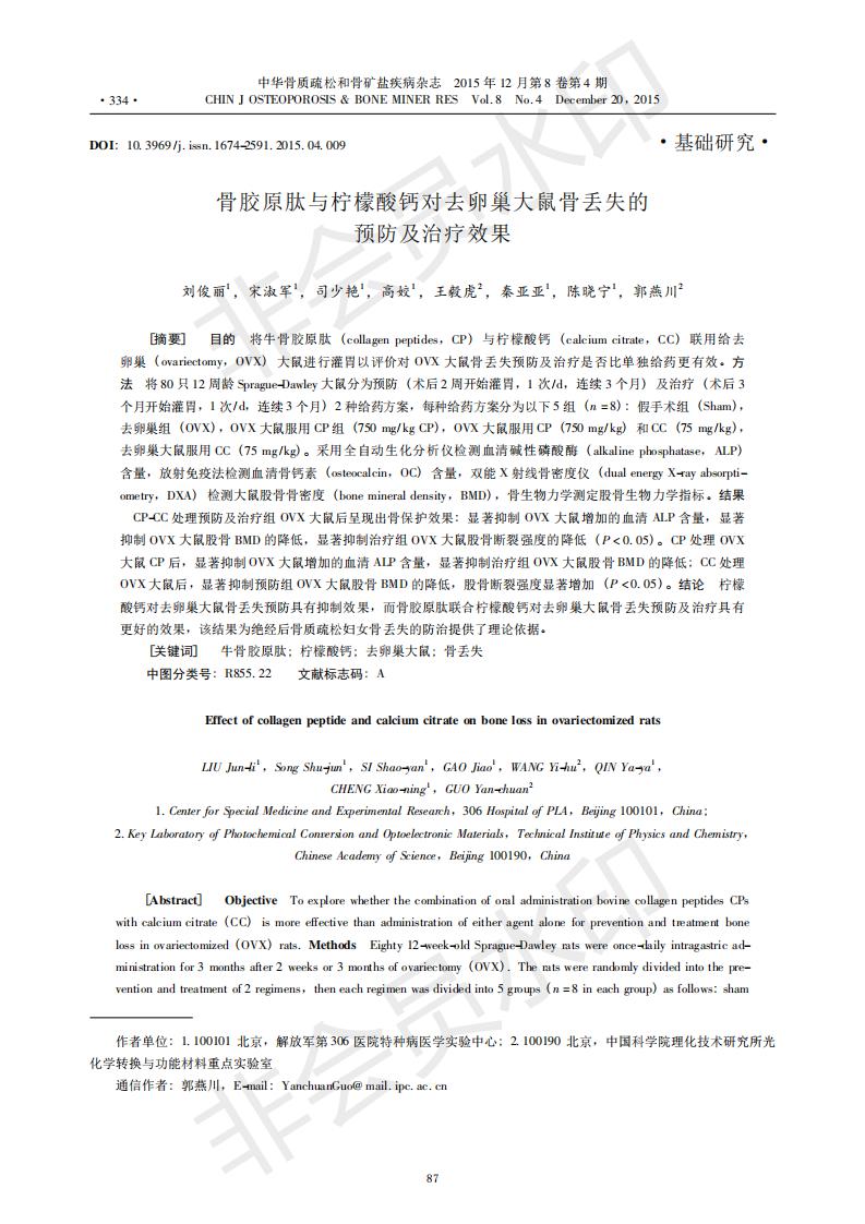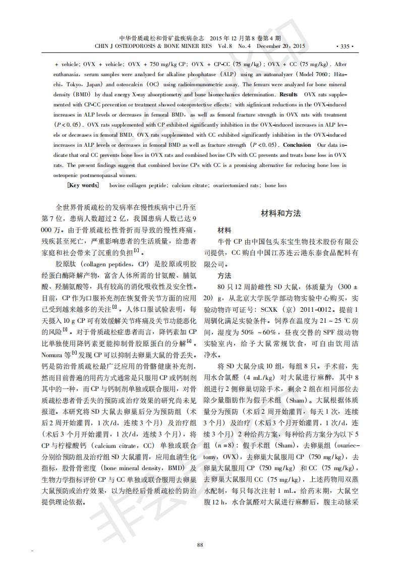 骨膠原肽與檸檬酸鈣對(duì)去卵巢大鼠骨丟失的預(yù)防及治療效果