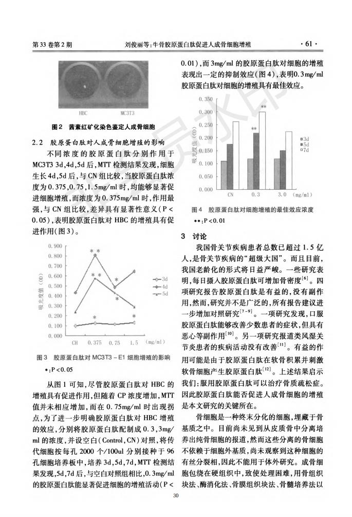 牛骨膠原蛋白肽促進(jìn)人成骨細(xì)胞增殖