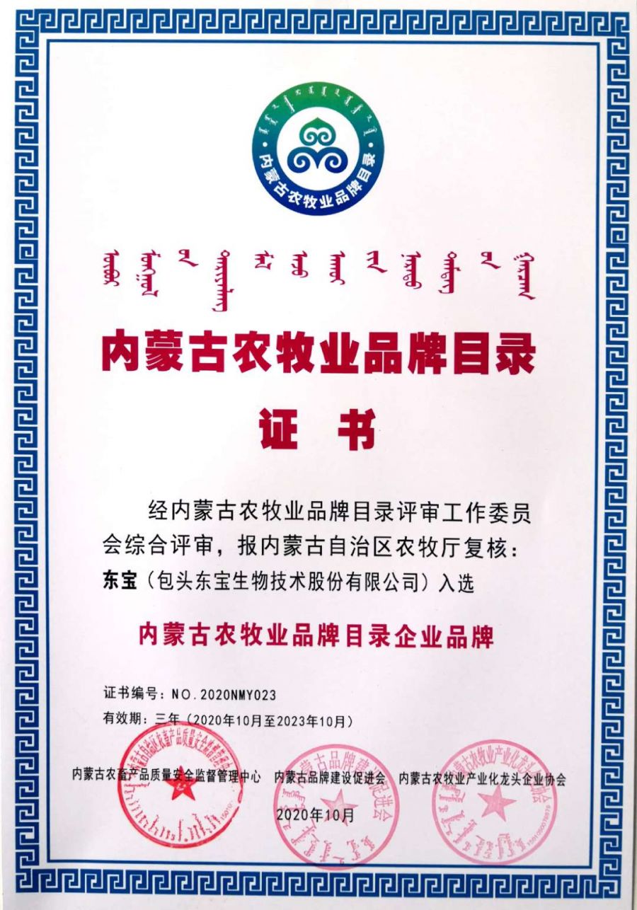 近日,內(nèi)蒙古農(nóng)牧業(yè)品牌目錄發(fā)布會在內(nèi)蒙古國際會展中心成功舉行,自治區(qū)農(nóng)牧廳和有關部門領導、組織實施單位負責人及品牌目錄企業(yè)代表近100人參加了發(fā)布會?,F(xiàn)場發(fā)布了內(nèi)蒙古農(nóng)牧業(yè)品牌目錄名單,東寶生物的“東寶”和“圓素”成功入選,作為內(nèi)蒙古農(nóng)牧業(yè)品牌代表并頒發(fā)了證書。