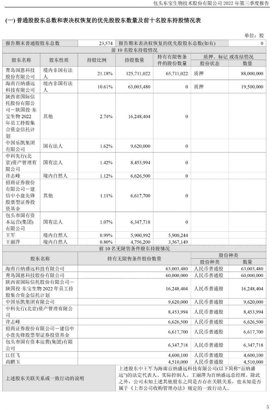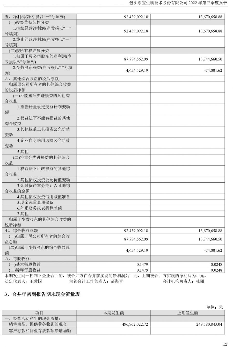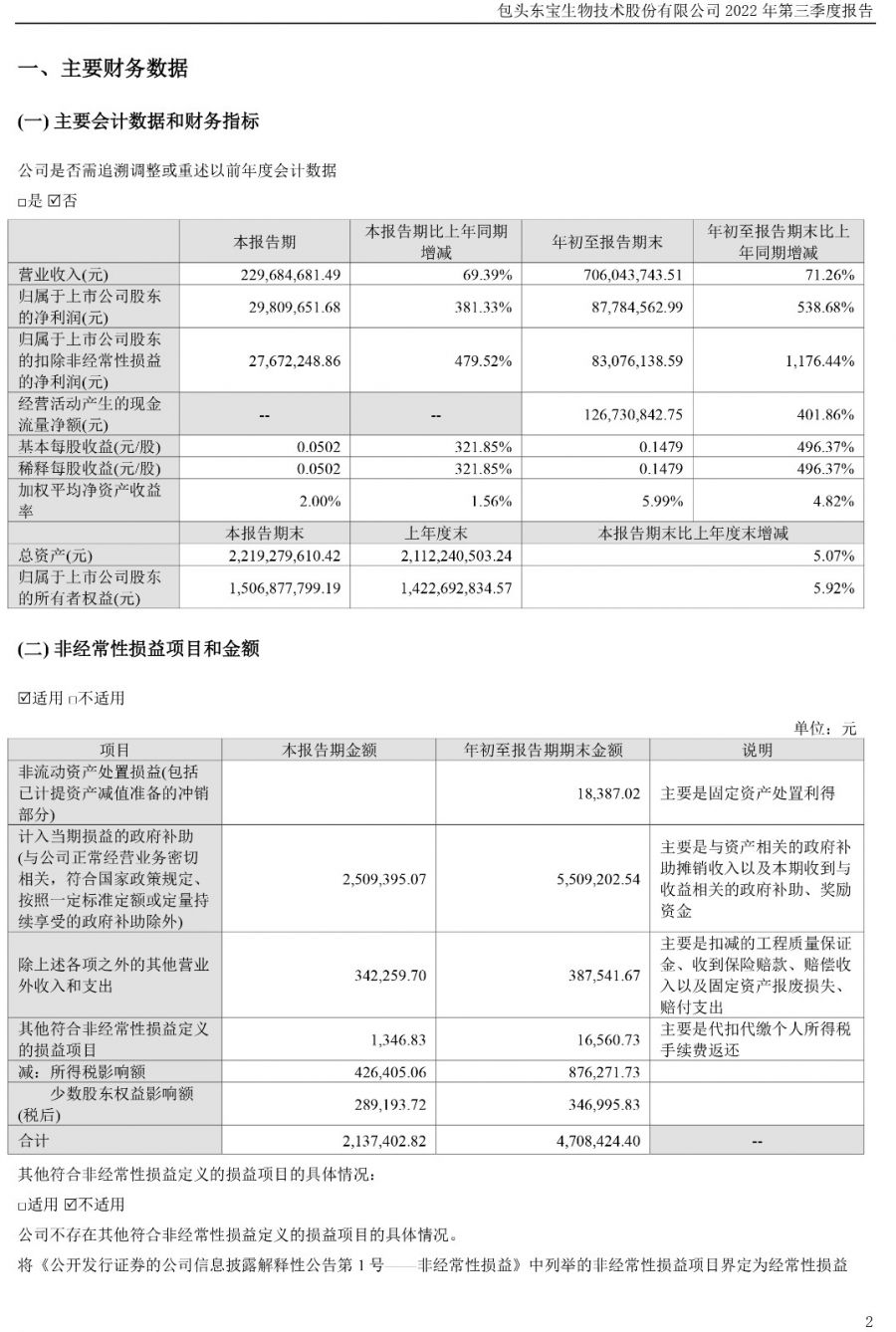 2022年?yáng)|寶生物三季度報(bào)告